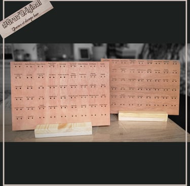 Les échanges réguliers avec Cathy ont permis d'affiner chaque détail : dimensions des présentoirs, espacement entre les emplacements, choix des matériaux et style de gravure.
